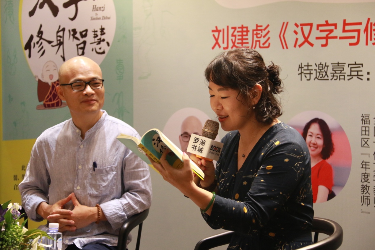 活動(dòng)由深圳書城羅湖城張華女士主持,邀請(qǐng)到壹讀書會(huì)創(chuàng)始人、知名閱讀推廣人、 《漢字與修身智慧》作者劉建彪先生和全國(guó)十佳文學(xué)教師、廣東省閱讀推廣“點(diǎn)燈人”譚妙蓉女士擔(dān)任對(duì)話嘉賓,為聽眾講述漢字的起源以及他們根據(jù)切身體會(huì)對(duì)漢字的解讀。