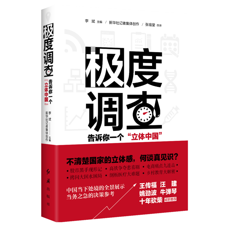 “他山之石,可以攻玉。”黨員干部除了直接調(diào)研,還要善于間接調(diào)查,研讀科研機(jī)構(gòu)和媒體的調(diào)研報(bào)告,通過專業(yè)人士的視角,了解國情。 《極度調(diào)查:告訴你一個(gè)“立體中國”》,就是一本記錄時(shí)代變遷的調(diào)研力作。新華社北京分社副社長、總編輯李斌者歷時(shí)三年,深入中國各地實(shí)施一系列重大調(diào)研,直擊民生痛點(diǎn)與焦點(diǎn),全方位呈現(xiàn)了復(fù)雜多樣的中國社會(huì)現(xiàn)實(shí)。20余萬字的《極度調(diào)查》,來自繁華都市,來自風(fēng)云行業(yè),更來自深山峽谷、偏遠(yuǎn)山村,股市、高鐵、電商、生態(tài)、教育、貧困、健康等諸多方面均有涉及,傳達(dá)出了最一線、富有思想沖擊力的聲音。讀此書,全方位、多維度了解中國國情。