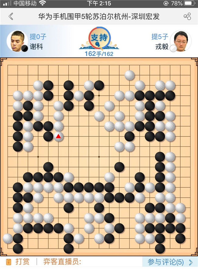 見圳客戶端?深圳新聞網(wǎng)2020年8月29日訊(記者周錦春)休戰(zhàn)一天的2020“華為手機(jī)杯”中國圍棋甲級(jí)聯(lián)賽,今天重燃戰(zhàn)火,第五輪繼續(xù)在浙江長興進(jìn)行。深圳宏發(fā)隊(duì)對(duì)陣衛(wèi)冕冠軍蘇泊爾杭州隊(duì),結(jié)果以3比1大勝。目前積12分,暫居積分積分榜第二位。本輪亮點(diǎn):深圳宏發(fā)隊(duì)三連勝!快棋五連勝!戎毅五連勝!