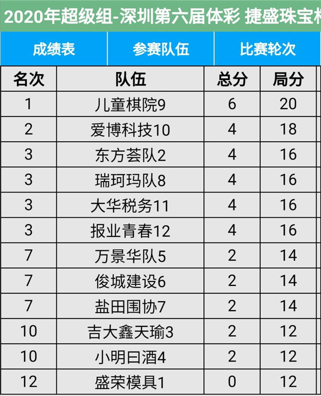 深圳市圍棋聯(lián)賽以其獨(dú)特的25D賽制,新穎的團(tuán)體對(duì)抗形式,旗鼓相當(dāng)?shù)膶?shí)力比拼,而深受圍棋愛(ài)好者的喜愛(ài),已然成為每年一度的市圍棋愛(ài)好者的盛會(huì)。本屆聯(lián)賽共有28支隊(duì)伍參賽,每支隊(duì)伍12人,領(lǐng)隊(duì)和教練各一至兩人,今年參賽人數(shù)約四百多人。其中,超級(jí)隊(duì)12支,進(jìn)行11輪單循環(huán)比賽,甲級(jí)隊(duì)16支進(jìn)行11輪積分循環(huán)賽。具體賽程安排是:今日開(kāi)賽后,連續(xù)四個(gè)周日,每周3場(chǎng)比賽,計(jì)劃在11月22日完成比賽。本屆比賽12支超級(jí)隊(duì)是:盛榮模具、東方薈隊(duì)、吉大隊(duì)、小明日酒、萬(wàn)景華隊(duì)、俊城建設(shè)、鹽田棋協(xié)、瑞珂瑪隊(duì)、兒童棋院、愛(ài)博科技、大華稅務(wù)、報(bào)業(yè)青春。16支甲級(jí)隊(duì)是:中廣核華龍、武漢地質(zhì)、吉大校友、億貝奇電子、大眾建設(shè)、騰訊圍棋、奇力電子、羅湖圍棋、深圳大學(xué)、金陽(yáng)信隊(duì)、和輝資本、法律人隊(duì)、鑫華豪家私、深圳126隊(duì)、越華建設(shè)、華科校友。大家濟(jì)濟(jì)一堂,通過(guò)手談增進(jìn)友誼,提高棋藝。本屆比賽超級(jí)組與甲級(jí)組實(shí)行升降制,將通過(guò)四個(gè)周日的比賽,分別決出前六名和三支升降的隊(duì)伍。