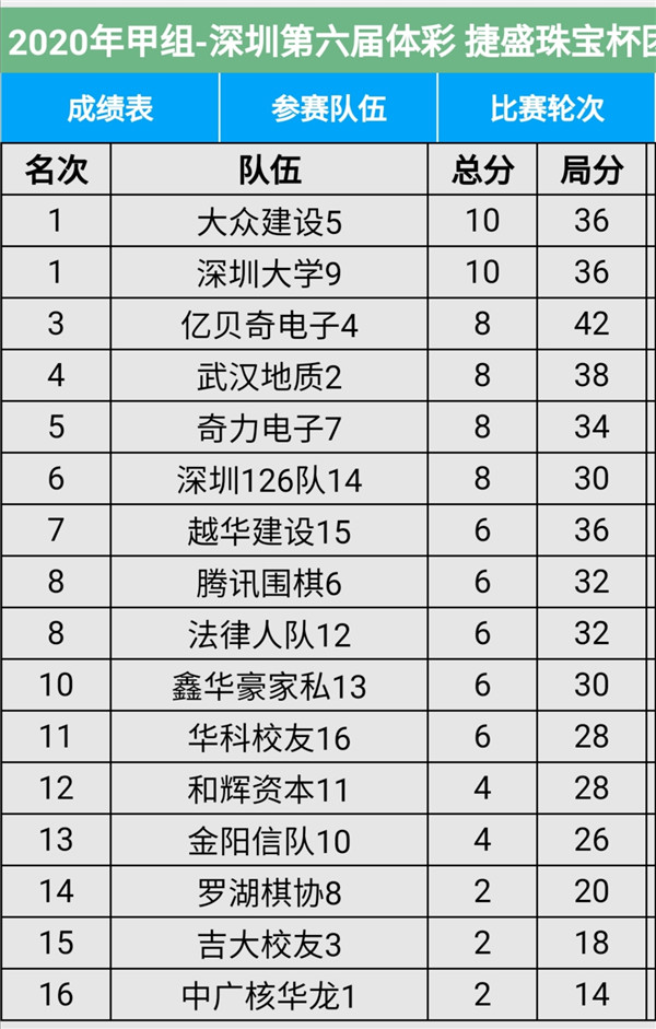 見圳客戶端?深圳新聞網(wǎng)2020年11月8日訊(記者周錦春)第六屆“體彩?捷盛珠寶杯”深圳市圍棋聯(lián)賽繼續(xù)在羅湖區(qū)藝嘉大酒店展開,今天是第二場(chǎng),有第4輪至第6輪的比賽。目前,超級(jí)組中,兒童棋院隊(duì)、瑞珂瑪隊(duì)領(lǐng)先;甲級(jí)組中,大眾建設(shè)、深圳大學(xué)領(lǐng)先。具體賽程結(jié)果請(qǐng)看本文附后表格。