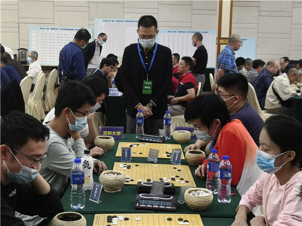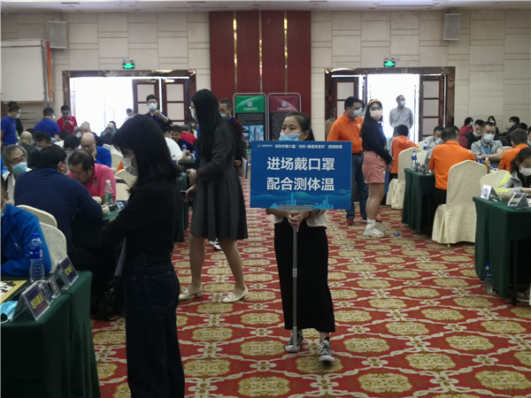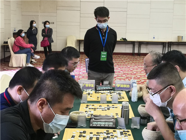 本屆聯(lián)賽在仍在抗疫的形勢(shì)下來(lái)之不易,賽事組委會(huì)非常珍惜,在防疫方面下了一番功夫。本次賽事執(zhí)行主任、著名國(guó)手梁偉棠九段介紹說(shuō):組委會(huì)在本次賽事《補(bǔ)充規(guī)定》中要求“本屆賽事因?yàn)橐咔榉揽匦枰?,全體人員必須佩戴口罩,掃碼入場(chǎng),并全程不得摘下口罩;體溫過(guò)高者謝絕入場(chǎng)”。記者觀察到,現(xiàn)場(chǎng)的防疫落實(shí)還是比較到位的,一是在賽場(chǎng)入口布置了三人團(tuán)隊(duì),加強(qiáng)了掃碼、體溫檢測(cè)、提醒大家戴口罩,凡是入場(chǎng)的隊(duì)員、工作人員以及觀戰(zhàn)的圍棋愛好者,都必須進(jìn)行體溫檢測(cè),符合正常體溫的方可入場(chǎng)參賽;二是要求參賽隊(duì)員和工作人員戴口罩;三是加強(qiáng)賽場(chǎng)巡查,對(duì)沒有自覺戴口罩的在場(chǎng)人員進(jìn)行勸導(dǎo)??傮w來(lái)說(shuō),賽場(chǎng)防疫秩序良好。