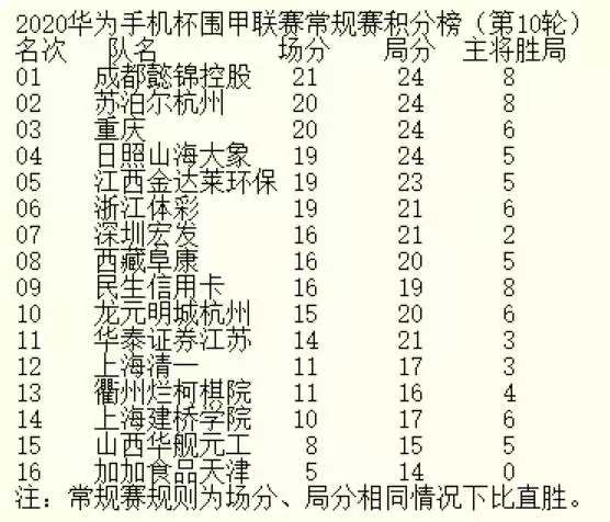 2020華為手機(jī)杯中國圍棋甲級(jí)聯(lián)賽第十輪