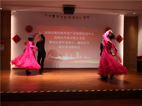 紀(jì)念活動伊始,深圳市社會組織管理局副局長白凌在出差途中發(fā)來視頻祝賀。簕杜鵑養(yǎng)老產(chǎn)業(yè)促進(jìn)中心上級領(lǐng)導(dǎo)張道新也一直關(guān)注和支持活動的進(jìn)展?;顒蝇F(xiàn)場,簕杜鵑養(yǎng)老產(chǎn)業(yè)促進(jìn)發(fā)展中心黨支部書記于軍發(fā)表了熱情的簡短的講話。他首先對前來參加和指導(dǎo)活動的老首長、老前輩和各位嘉賓表示衷心的感謝。隨后,他簡短地介紹了簕杜鵑養(yǎng)老中心的發(fā)展情況。他說,該養(yǎng)老中心是按照習(xí)總書記“推動養(yǎng)老事業(yè)多元化、多樣化發(fā)展”的指示下成立的,得到社會管理局的支持和指導(dǎo),將會在深港兩地開展養(yǎng)老信息咨詢、養(yǎng)老機構(gòu)服務(wù)等。目前,成立了簕杜鵑養(yǎng)老產(chǎn)業(yè)發(fā)展中心黨支部、簕杜鵑養(yǎng)老產(chǎn)業(yè)藝術(shù)團(tuán),并將爭做黨建、文化建設(shè)的“雙排頭兵”作為該社團(tuán)的目標(biāo)之一。今年,已開展獻(xiàn)愛心走訪慰問,重陽節(jié)為羅湖區(qū)鶴年居家養(yǎng)老中心的老人送去4臺多功能輪椅、100支手杖、14400個口罩等實用物品;協(xié)調(diào)部分社康中心、醫(yī)院和相關(guān)基金會共同舉辦大型的老年人義診活動;同時與市內(nèi)多家大健康企業(yè)進(jìn)行溝通,建立長期聯(lián)合互助渠道,籌建示范養(yǎng)老基地,探索深圳特色的養(yǎng)老模式,打造養(yǎng)服務(wù)品牌,造福深港兩地老人群體。