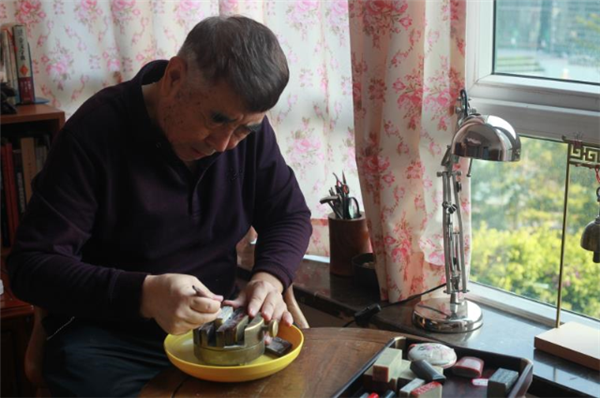 最后,請寧老師對治印的后學(xué)說幾句,他說“什么時(shí)候都不晚,只要肯開始,找到好的老師,持之以恒,便有機(jī)會(huì)成功”,自己的經(jīng)歷就是一個(gè)證明吧。也是,當(dāng)下中國逐漸進(jìn)入“老齡化社會(huì)”,許多老人退休之后“無所事事”,等退體金、等“臨門一腳”成為常態(tài)。而寧起興憑著一份興趣,六十歲而后拓出一片天地,堪為榜樣!令人欣喜是,他的行為對子孫也是一種言傳身教,小外孫女2歲時(shí)在街上看到篆字招牌,馬上就說這是姥爺?shù)淖?。平日,她還學(xué)著姥爺讀書刻章的模樣,做手工、畫畫,常有創(chuàng)意。看到這一幕,作為古稀老人,寧起興感到非常欣慰。他說,自己做到了“老有所為”,還產(chǎn)生了教化子孫的效果,開心是自然的。他希望更多的人喜歡中國篆刻藝術(shù),希望更多的退休老人們生活充實(shí)、老有所為!