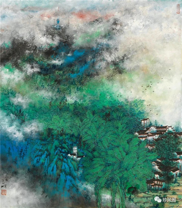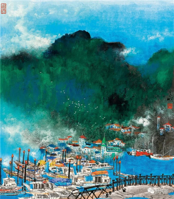 宋玉明從金陵畫派的新傳統(tǒng)跨越到城市表現(xiàn)的積彩拓墨畫法,既體現(xiàn)了現(xiàn)代化城市對于變革傳統(tǒng)的時代訴求,也體現(xiàn)了他移居深圳后這座新興城市文化對于他的深刻影響。畢竟,連續(xù)數(shù)屆的深圳水墨雙年展對于水墨在跨文化中重要作用與表現(xiàn)方法的突破,都給予他至深的思想開拓。這表明,城市山水畫已不單純是用中國畫表現(xiàn)城市的命題,而是其中能夠蘊含多少城市文化觀念與城市審美的方法,宋玉明對于城市山水畫的探索,體現(xiàn)的正是這樣一種對城市現(xiàn)代文化的思想融合性。而不拘謹(jǐn)于城市一磚一石、一街一道、一房一樓的描繪,著眼于發(fā)揮水墨與彩墨表現(xiàn)的自由性,抑或體現(xiàn)了人性、自然與現(xiàn)代城市共同作用的現(xiàn)代生活方式與人文理想。的確,純粹用中國畫或水墨畫來探索城市的現(xiàn)代化景觀表現(xiàn),也許只是淺層次的審美需求;而只有當(dāng)把山水畫作為人與自然和諧統(tǒng)一的觀念表達(dá)植入城市現(xiàn)代化的審美訴求時,城市山水畫才能真正凸顯出其深刻的美學(xué)價值。這正是我們從宋玉明的作品里能夠讀解到的他對于城市山水畫審美理想的一種勾畫。