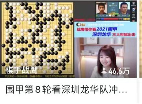 形勢大好,深圳龍華隊網上直播合作人,虎牙直播間圍棋知名主播戰(zhàn)鷹這里自然也是“門庭若市”,人數(shù)沖上46萬大關。賽后,石豫來到直播間作客,小帥哥自然受到熱捧!深圳龍華隊的后續(xù)戰(zhàn)況仍將在這里直播哦,關注戰(zhàn)鷹講棋,人美、棋強、口才好,是知名的圍棋主播。
