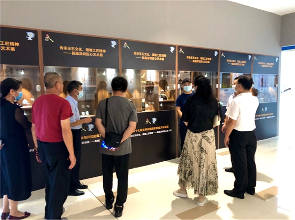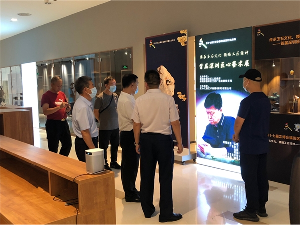 活動(dòng)開展期間,深圳市民協(xié)專職副主席張晉文、深圳市文創(chuàng)體社會(huì)組織黨委第一書記、深圳市群眾文化學(xué)會(huì)會(huì)長楊素賢、深圳市深港文藝家交流協(xié)會(huì)主席、福田區(qū)文化議員王廉運(yùn)等多位嘉賓參觀了匠心藝術(shù)展,陳宗藝現(xiàn)場(chǎng)介紹了玉雕作品,中國工藝美術(shù)大師錢高潮、中國工藝美術(shù)大師裴永中等也前來參觀交流。