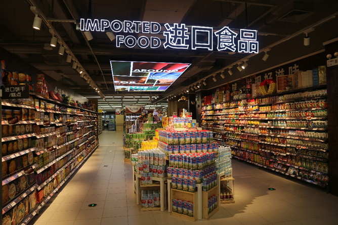 據(jù)超市負責人介紹,此店經(jīng)營商品數(shù)超2萬多種,在陳列設(shè)計上按照商品類型進行了區(qū)塊劃分,有“進口食品中心、有機健康中心、美酒薈、個人護理中心、面包坊”等多個品類中心。售賣800余種來自多個國家的食品,超過400種奶制品、米、面粉、雜糧、調(diào)味品及600種酒品。超市主打“生鮮”概念,有超過100種來自生鮮基地的果蔬、凍禽、海產(chǎn)、冰鮮,而“基地直采”的商品多數(shù)直接來自國家重點扶貧縣的農(nóng)戶手中。