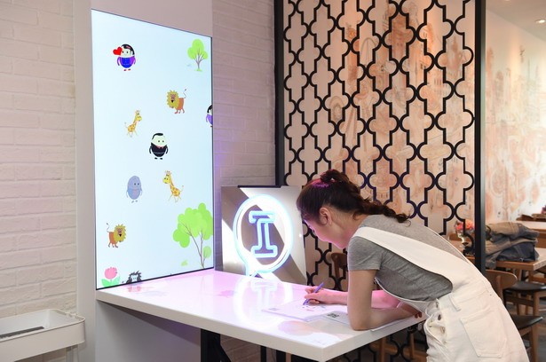 餐廳中心區(qū)域設(shè)置了一款風(fēng)靡全球的“奇妙涂鴉”互動(dòng)游戲,只需用蠟筆或微信小程序涂鴉,就能親眼見(jiàn)證自己填色的靜態(tài)畫像活靈活現(xiàn)地走入桌面走上墻壁,人人均可當(dāng)一回“神筆馬良”,用創(chuàng)意打開(kāi)無(wú)限想象,邊吃邊玩,將用餐變成一種愉悅的享受。