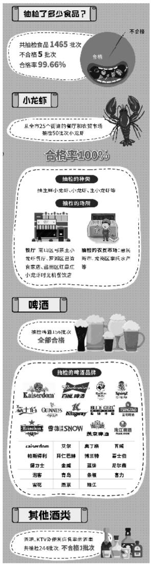 據(jù)了解,在世界杯足球賽開賽前夕,深圳市食藥監(jiān)局就通過網(wǎng)絡(luò)調(diào)查活動對市民票選出的熱門宵夜食品進(jìn)行了抽檢,包括燒烤類食品、啤酒、小龍蝦、零食炒貨堅(jiān)果制品、膨化食品、醬鹵肉制品,同時(shí)對備受球迷歡迎的酒吧等場所售賣的酒類產(chǎn)品進(jìn)行抽檢。行動共抽檢樣品1465批次,發(fā)現(xiàn)不合格樣品5批次,合格率達(dá)99.66%。
