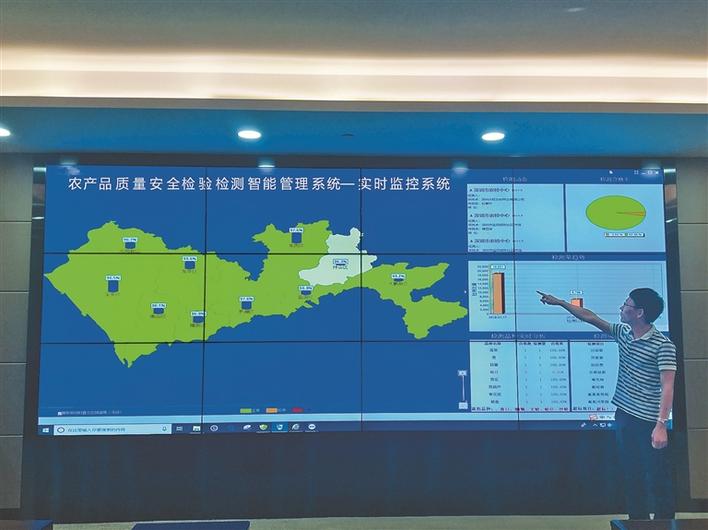 對于農(nóng)產(chǎn)品質(zhì)量安全檢驗檢測智能管理系統(tǒng)將來的功能設想,農(nóng)檢中心工作人員也向記者進行了模擬展示,整個智能管理系統(tǒng)將會有“數(shù)據(jù)查詢”、“抽檢動態(tài)”、“實時展示”等多種功能。在“實時展示”中,記者看到屏幕上出現(xiàn)了深圳十區(qū)(新區(qū))的電子地圖,每個區(qū)(新區(qū))的農(nóng)產(chǎn)品檢測合格率都可以按照年度、月度、每天進行顯示,不僅如此,每個區(qū)(新區(qū))所有街道的檢測合格率也都能在電子地圖上展現(xiàn)出來。