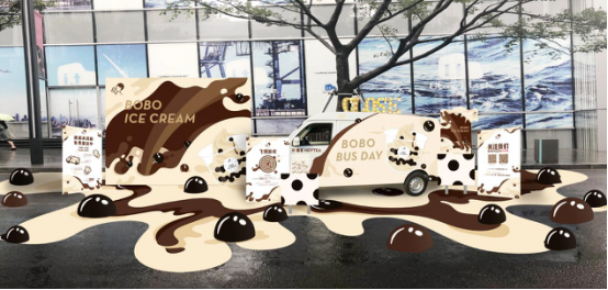 本次喜茶“波波冰淇淋巴士”全面升級,延續(xù)了時(shí)尚的波點(diǎn)元素,融入冰淇淋流質(zhì)爽滑的視覺形象,讓整個(gè)快閃店在炎熱的夏天也透著一絲絲涼意?,F(xiàn)場還增加了波波冰淇淋背景墻與地貼,烘托了夏天的歡樂氛圍,為消費(fèi)者打造更有趣味性的互動(dòng)環(huán)境。