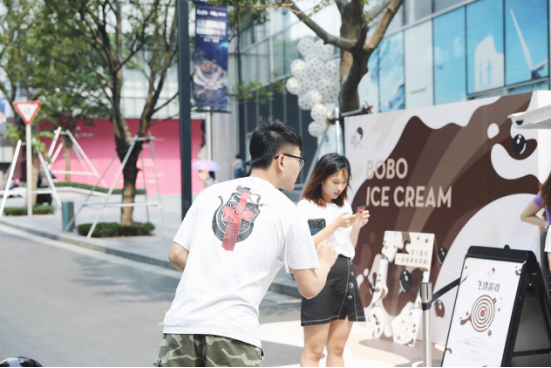 活動(dòng)當(dāng)天,只要身穿波點(diǎn)元素衣服,就可在波波巴士站領(lǐng)取一杯喜茶派送的新鮮現(xiàn)做的“波波冰淇淋”。互動(dòng)玩法也更加豐富,除了現(xiàn)場設(shè)置了很多互動(dòng)拍照的小道具和背景之外,還新添加了抽獎(jiǎng)、飛鏢游戲環(huán)節(jié),并為消費(fèi)者準(zhǔn)備了多樣波波冰淇淋周邊,如喜茶定制波波手機(jī)殼、波波冰淇淋扇子、波波冰淇淋貼紙等等。