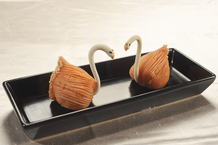 如果說,雅致的餐廳環(huán)境能讓人留下印象,那讓人記住且流連忘返的必定是美味的出品。陶陶居不僅匯集各類廣府名點(diǎn),而且在傳統(tǒng)點(diǎn)心的基礎(chǔ)上加以改良創(chuàng)新,始終堅(jiān)持全手工現(xiàn)場制作,在口味和品質(zhì)上獲得各地食客的一致好評。其中,馳名的陶陶居大蝦餃完美呈現(xiàn)十三道褶,顆顆飽滿,外皮晶瑩剔透,包裹住三只鮮蝦仁,鮮美誘人;鮮果榴蓮天鵝酥對傳統(tǒng)的榴蓮酥加以改良,采新鮮榴蓮入餡,原創(chuàng)天鵝造型,造型優(yōu)美,廣獲好評;曾被湖南衛(wèi)視《天天向上》節(jié)目推薦的流沙奶皇豬豬包,則是使用咸鴨蛋新鮮制作而成的,香而不膩,造型可愛,是店內(nèi)最受小朋友喜愛的茶點(diǎn)之一。