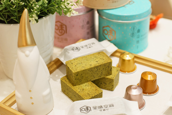 除了這款奶黃流心酥,徐福記實(shí)體品牌體驗(yàn)店——呈味空間主打的現(xiàn)烤手工鳳梨酥還有多種口味,有經(jīng)典原味/蔓越莓/馥香烏龍茶/相思抹茶/玫瑰口味供君任選。每款鳳梨酥的誕生都來(lái)之不易,從材料制作、烘焙、出爐都要經(jīng)過(guò)糕點(diǎn)師傅的精心手工打磨?;ㄙM(fèi)15種原料,經(jīng)過(guò)11道工序,連各種用料配比都要精確到克才實(shí)現(xiàn)一塊鳳梨酥的誕生,看得出這塊不普通的鳳梨酥“出生“有多矜貴。而且原材料都是精心挑選的清甜細(xì)膩陽(yáng)光土鳳梨,通常10個(gè)才有一個(gè)符合要求,制作一盒就至少需要整整20個(gè)。反復(fù)打磨鳳梨的果肉,再熬制成細(xì)膩的、富有纖維感的果餡,絲絲纖維口感,一口下去,滿滿鳳梨果肉,瞬間得到視覺(jué)與味蕾的雙重滿足。特別一提的還有制作鳳梨酥的糖,不是普通的白砂糖,而是健康而且低熱量的 “海藻糖”,簡(jiǎn)直是為擔(dān)心發(fā)胖問(wèn)題的吃貨們帶來(lái)的福音。只有10天保質(zhì)期的美味,吃貨們不用半個(gè)鐘就能解決了哈哈。