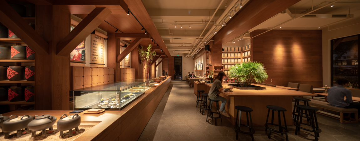 “一個溫暖的會客廳”是tea’stone對所構(gòu)建的茶空間的定義,也是他們對其所提倡的茶美學生活的表達之一。tea’stone團隊有著深厚的空間美學造詣,在傳統(tǒng)的基礎(chǔ)上做減法,沉浸式的開放空間,選取東方美學的核心因素,以傳統(tǒng)梁柱,斗拱和椽檁,勾勒出當代簡約的茶空間,呈現(xiàn)出精制溫暖的格調(diào),家私、櫥窗、花藝凡見種種,皆散發(fā)著和諧雅致的美感。簡潔,現(xiàn)代,精致,溫暖,再結(jié)合“一人一席”的飲茶方式,讓喝茶這件事完整靈動,并且稱得上具有美感的生活方式。難怪能看到越來越多的人們抱著筆記本坐在tea’stone里面獨處、辦公、會友?,F(xiàn)代中國人的“第三空間”從此又有了新的選擇。