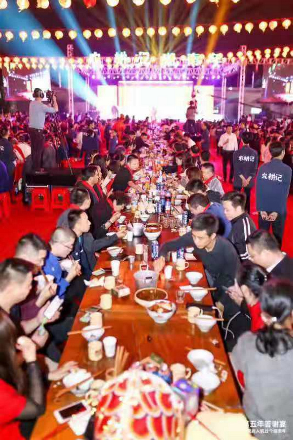 據(jù)了解,本次答謝宴是由農(nóng)耕記湖南土菜舉辦的第五年顧客答謝宴,為表達顧客對農(nóng)耕記支持的感謝,農(nóng)耕記湖南土菜在1月11日當天在深圳22家門店進行全場菜品5折的活動,同時在塘頭工業(yè)園布置近3000平米湖南村鄉(xiāng)下宴席,宴請全深圳人民過個湖南年。