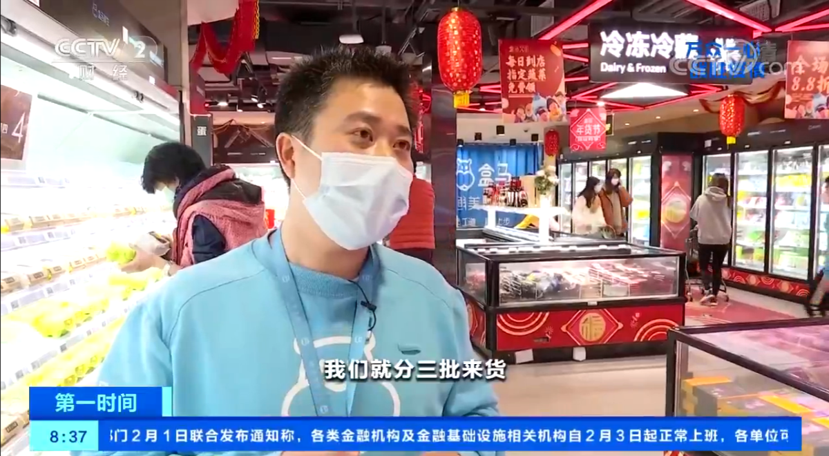 “排面要整理一下?!眮碜院钡溺娞炱绞呛旭R鮮生超市員工,他告訴記者,春節(jié)前,因為陸續(xù)看到疫情的消息,他和愛人取消了返鄉(xiāng)的車票,但這也是他這么多年來所經(jīng)歷的,最不尋常的一個。初一初二休息的鐘天平,大年初三就碰上了搶購?!邦櫩团砰L隊,從9點鐘排隊排到1點鐘左右,貨架上的蔬菜、肉以及禽蛋奶,甚至是油米面都被一掃而空?!?/p>