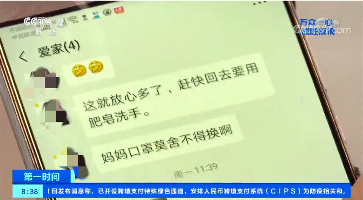 除了緊張忙碌的工作,鐘天平更擔憂1000公里之外的家人。他的岳父母生活在湖北黃岡市下轄的浠水縣。在鐘天平的微信里有一個叫愛家的群,里面就是岳父岳母和他兩口子,互相囑咐戴好口罩、注意安全,成了這個春節(jié)最重要的祝福語。