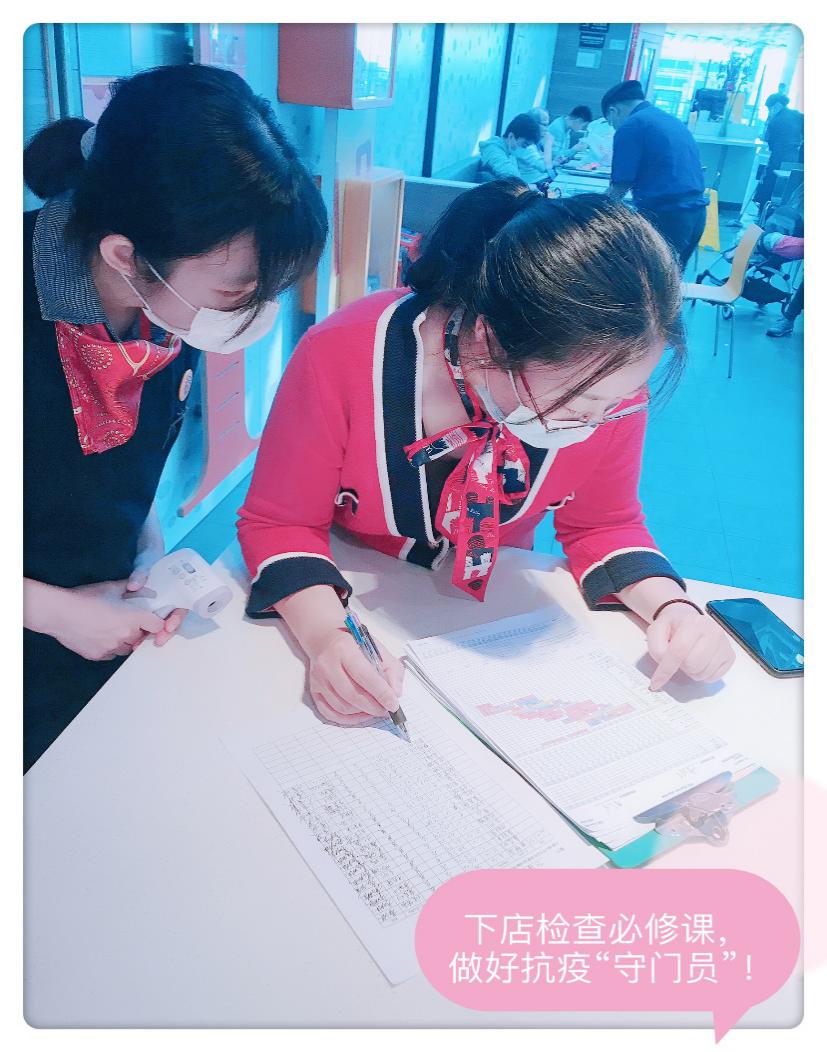 所以,每日的下店檢查是蔡麗麗工作必不可少的一個環(huán)節(jié)。下店檢查時看到的問題,會及時提出和校準。確保轄區(qū)所有餐廳可以無偏差的嚴格執(zhí)行公司的防疫措施。這時的“快”和“嚴”就是“生死時速”。因為,餐廳任何的清潔消毒不到位,都有可能導(dǎo)致員工病毒感染。