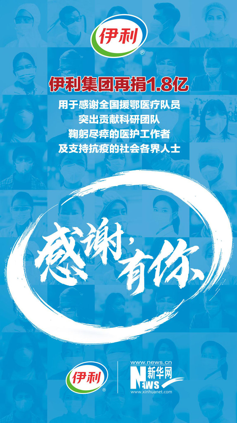 新華網(wǎng)北京3月26日電(胡可璐) 在這場戰(zhàn)“疫”中,無數(shù)平凡英雄帶給我們最多感動(dòng),他們以“逆行者”的無畏和擔(dān)當(dāng)筑起疫情防控生命線,守護(hù)著人民,守護(hù)著國家。3月26日,伊利集團(tuán)再捐1.8億,第一時(shí)間購買京東購物卡,贈(zèng)送給全國所有援鄂醫(yī)療隊(duì)員,向他們提供全年?duì)I養(yǎng)支持;向鐘南山院士、李蘭娟院士、程京院士團(tuán)隊(duì)捐贈(zèng)1500萬元,感謝科研工作者做出的突出貢獻(xiàn),共同推動(dòng)健康領(lǐng)域的科研攻關(guān);第一時(shí)間購買京東購物卡,贈(zèng)送給這次抗擊疫情中因公殉職醫(yī)護(hù)工作者的家屬,為他們提供連續(xù)十年的營養(yǎng)支持;同時(shí)也向奮戰(zhàn)在抗疫一線的社會(huì)各界人士提供營養(yǎng)保障。責(zé)任無界,大愛無疆,伊利累計(jì)捐贈(zèng)額度將達(dá)2.8億,共迎抗疫勝利。
