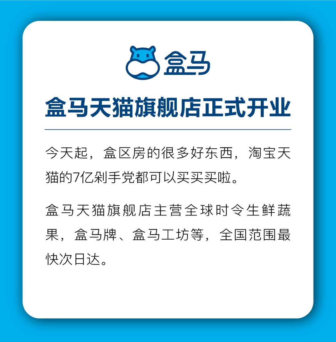 4月21日,盒馬鮮生天貓旗艦店正式亮相。這是2020年盒馬的重要生態(tài)布局之一。淘寶、天貓的7億消費者,也可以享受到盒馬全球時令的生鮮蔬果,以及盒馬牌、盒馬工坊等頭部優(yōu)質(zhì)商品,將安全、鮮美的地方農(nóng)貨特產(chǎn),端上百姓餐桌。