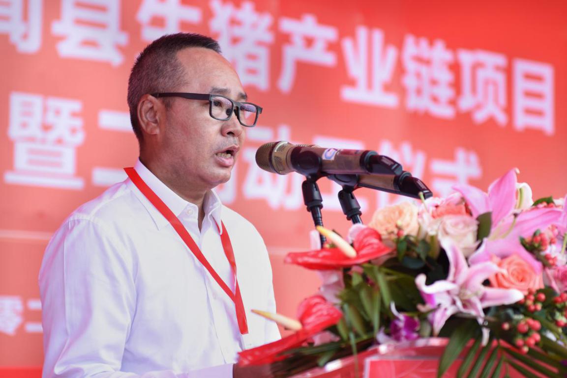 現(xiàn)場還舉行了二期項目動工儀式。據(jù)介紹,二期項目位于前山鎮(zhèn)黃桐樹嶺,由生活區(qū)、生產(chǎn)區(qū)、有機物資源中心組成,主要建設(shè)內(nèi)容包括:2條閉群自繁自育一體化樓層飼養(yǎng)模式生產(chǎn)線,合計年出欄商品豬36萬頭,預計2021年5月投產(chǎn),2022年6月出欄商品豬。