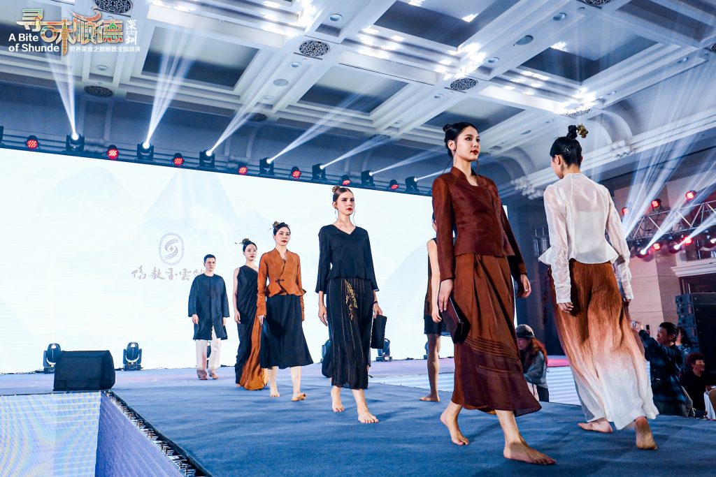 12月18日晚,在深圳華僑城洲際酒店,一段驚艷的順德香云紗模特走秀拉開了世界美食之都順德全國路演的序幕。香云紗是目前世界紡織品中唯一使用純植物染料染色的真絲綢面料,產(chǎn)自順德倫教。作為一項(xiàng)有著600多年歷史的技藝,“香云紗染整技藝”在2008年入選國家級非物質(zhì)文化遺產(chǎn),是順德獨(dú)特的一張城市名片。當(dāng)晚的活動(dòng)上,模特兒們通過主題走秀,展示了各種款式香云紗服裝的魅力。