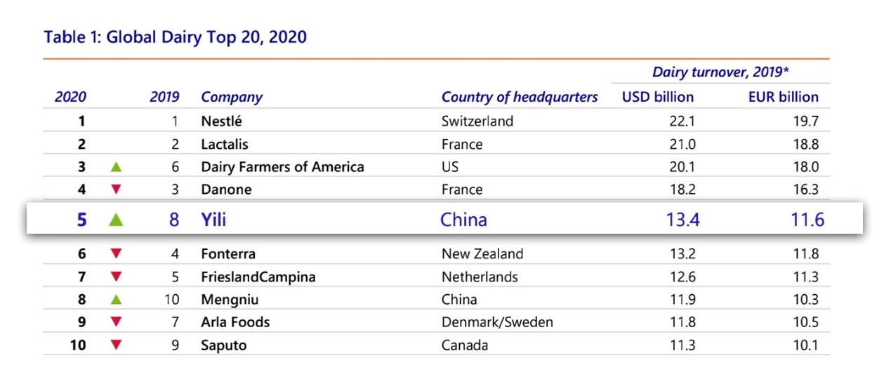 伊利躋身“全球乳業(yè)五強”