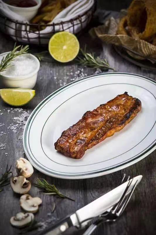 超厚焦脆培根同樣令人驚喜,精選大塊五花肉,手動刨成手指厚度的培根肉,先煎后烤,外皮烤得焦脆,內(nèi)里卻嫩到不可思議。