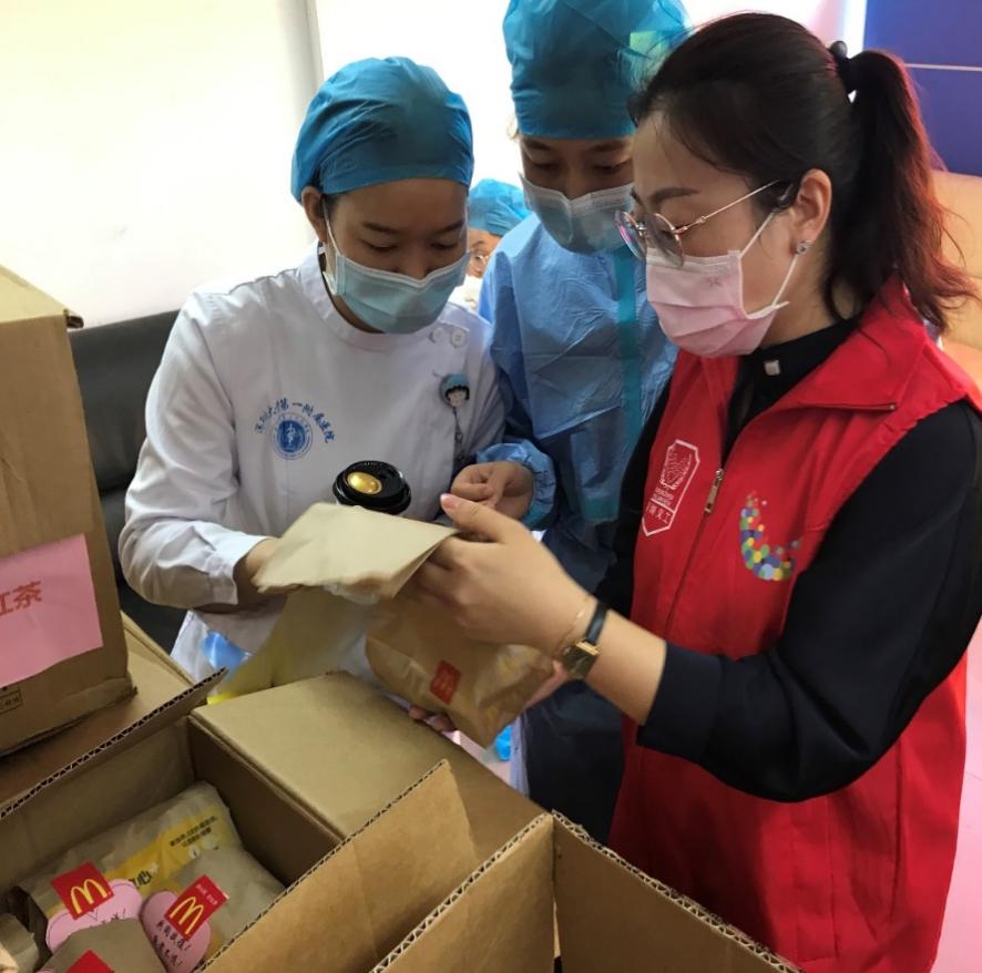 深圳麥當勞“麥麥義工團”小伙伴們?yōu)榭挂咭痪€醫(yī)護人員送去愛心餐食