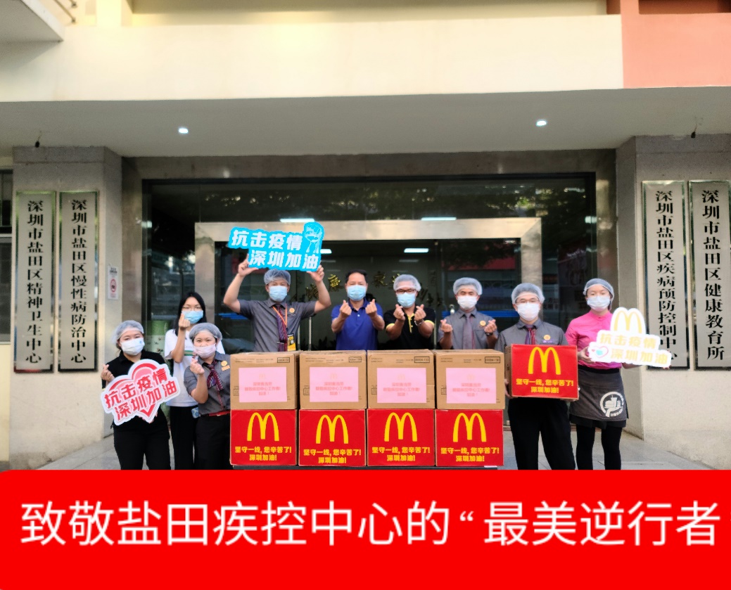 深圳麥當勞“麥麥義工團”小伙伴們向鹽田疾控中心防疫工作一線的醫(yī)護人員贈送愛心餐食