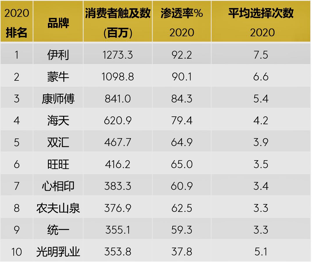伊利連續(xù)6年穩(wěn)居中國市場消費者選擇最多的品牌榜首
