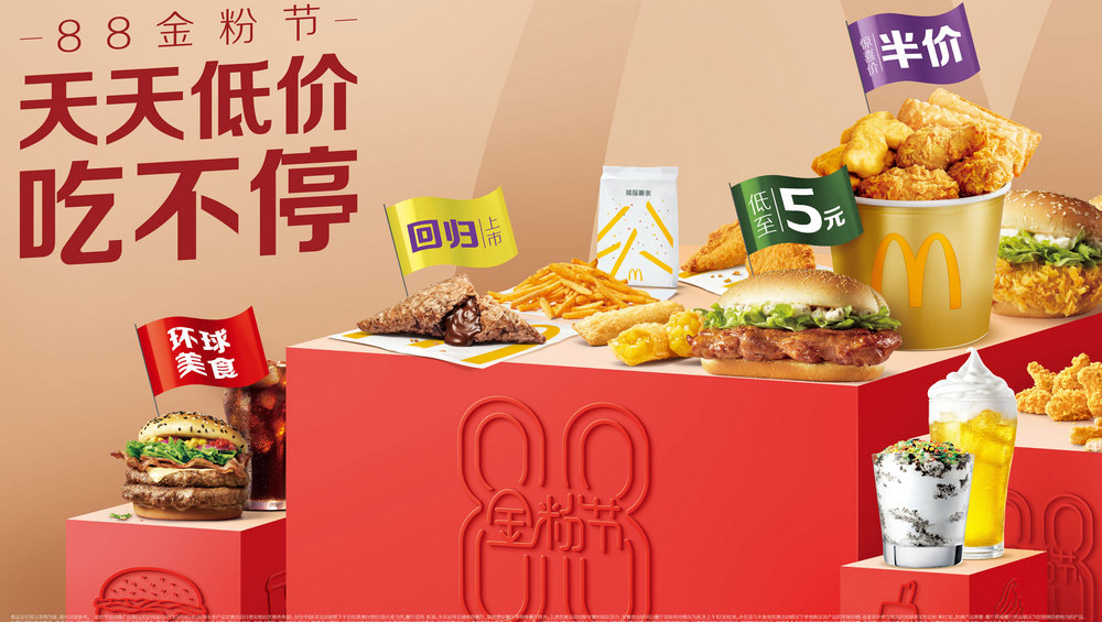 麥當勞中國正式啟動年度“88金粉節(jié)”,開啟連續(xù)28天的會員專享驚喜優(yōu)惠。