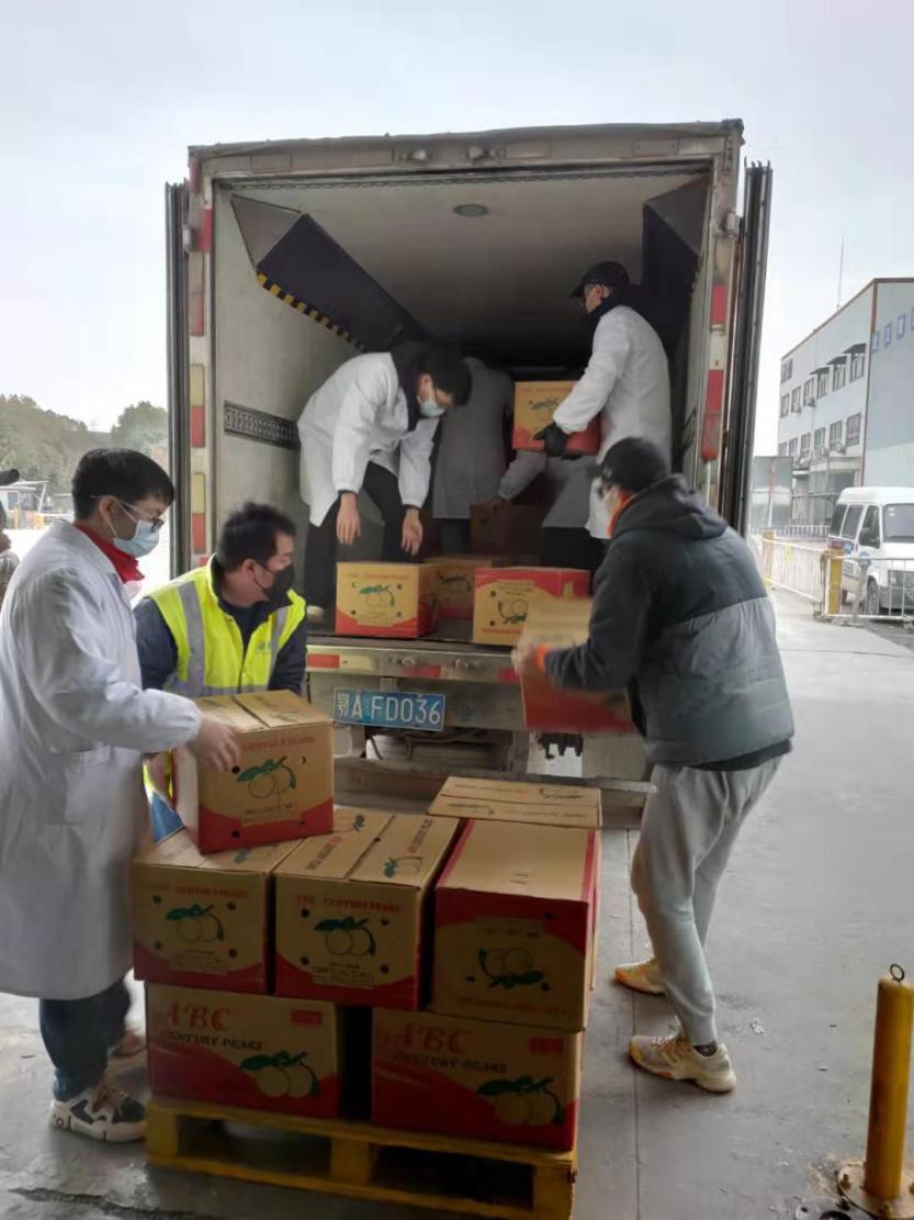 2月6日,百果園工會在深圳龍崗區(qū)南灣街道總工會的支持下,為深圳市第三人民醫(yī)院送去1600余份水果,助力奮戰(zhàn)在抗疫一線的醫(yī)護(hù)人員補(bǔ)充營養(yǎng)。