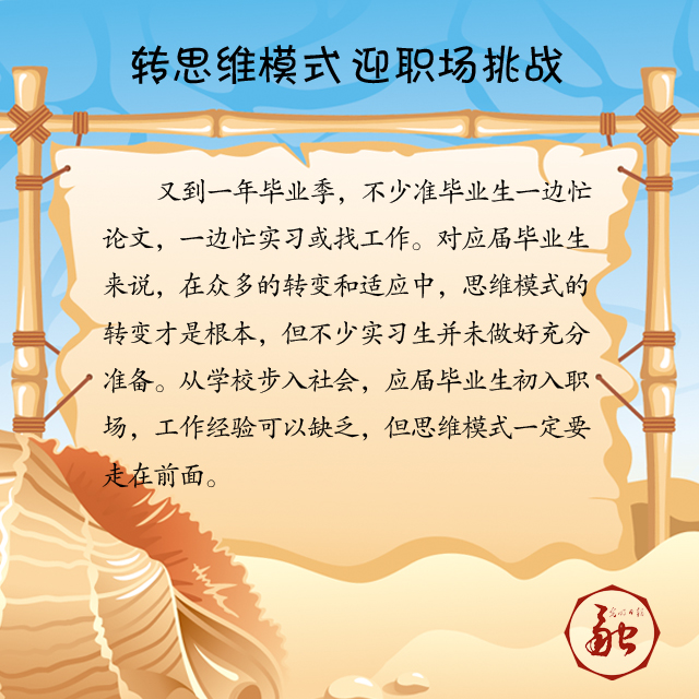 又到一年畢業(yè)季,不少準(zhǔn)畢業(yè)生一邊忙論文,一邊忙實(shí)習(xí)或找工作。對應(yīng)屆畢業(yè)生來說,在眾多的轉(zhuǎn)變和適應(yīng)中,思維模式的轉(zhuǎn)變才是根本,但不少實(shí)習(xí)生并未做好充分準(zhǔn)備。從學(xué)校步入社會,應(yīng)屆畢業(yè)生初入職場,工作經(jīng)驗(yàn)可以缺乏,但思維模式一定要走在前面。