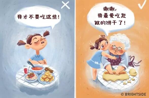 生活中有許多小事。例如,請他們擁抱并感謝奶奶做出美味的佳肴;提醒他們,得到幫助時(shí)要說謝謝,感謝爸爸媽媽所做的一切。
