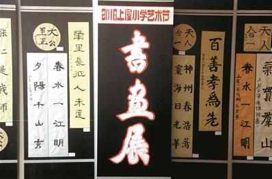 學(xué)校是教育人、培養(yǎng)人的主陣地,而深化教育改革,打造藝術(shù)特色,不僅僅是幾個(gè)教室、一個(gè)操場的概念,也絕非是一堂課、一次活動(dòng)。走進(jìn)上屋小學(xué),記者發(fā)現(xiàn),學(xué)校良好的藝術(shù)文化環(huán)境無時(shí)無刻不在發(fā)揮著育人作用。從名家名畫進(jìn)教室、班級(jí)美術(shù)活動(dòng)展區(qū)等班級(jí)藝術(shù)文化環(huán)境營造到墻畫、板報(bào)甚至是校園綠化等校園外部環(huán)境建設(shè),學(xué)校的每一處角落都散發(fā)著濃郁的藝術(shù)氣息。同時(shí),每個(gè)樓層將學(xué)生的書法、繪畫等藝術(shù)成果進(jìn)行展示,讓學(xué)生從中體會(huì)到成就感、享受到審美的愉悅。孩子們?cè)趯W(xué)校濃厚的藝術(shù)教育氛圍中,盡展才華、盡情發(fā)揮,放飛自己的夢想。