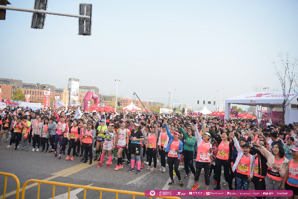 今年賽事現(xiàn)場(chǎng)最大的亮點(diǎn)在于,取消了開(kāi)賽儀式,僅保留鳴槍一項(xiàng)流程。主會(huì)場(chǎng)起點(diǎn)區(qū)域沒(méi)有了大型噴繪的主席臺(tái),取而代之的是小巧簡(jiǎn)約的發(fā)令臺(tái)。上午7點(diǎn),不間斷的熱身音樂(lè)響徹整個(gè)甜蜜小鎮(zhèn),運(yùn)動(dòng)員們?cè)谶M(jìn)入賽道集結(jié)后,配合著音樂(lè),跟隨著健身教練的指引一起熱身。上午8點(diǎn)30分,鳴槍嘉賓們準(zhǔn)時(shí)登臺(tái)鳴槍?zhuān)w3000多名跑者一起沖出起點(diǎn)門(mén),化作一片粉紅色的海洋,向著終點(diǎn)奔去。“取消開(kāi)賽儀式對(duì)跑者來(lái)說(shuō)是非常貼心的一項(xiàng)舉措,讓我們?cè)谶M(jìn)入賽道之后依然能夠繼續(xù)熱身,時(shí)間一到準(zhǔn)時(shí)開(kāi)跑,整個(gè)參賽流程也更加流暢了。”參賽選手在賽事現(xiàn)場(chǎng)直言道,簡(jiǎn)化起跑前的儀式流程,對(duì)于跑者來(lái)說(shuō)是一種更好的參賽體驗(yàn)。