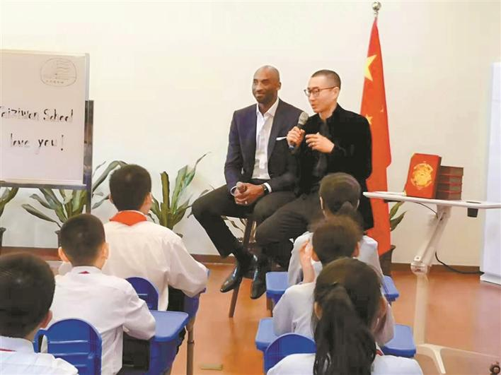 晶報(bào)3月18日訊 3月17日上午,參加完籃球世界杯抽簽后的科比如約來到深圳蛇口太子灣學(xué)校,給學(xué)生們上了一節(jié)課,同時還開了一個新書見面會。