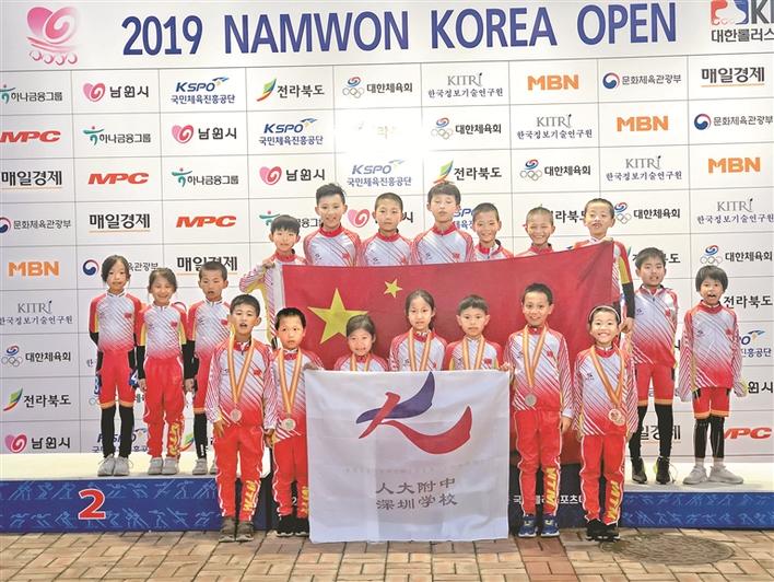 晶報(bào)05月16日訊 近日,韓國南原國際輪滑公開賽順利舉行,吸引了來自全球16個(gè)國家和地區(qū)的1000多名優(yōu)秀運(yùn)動(dòng)員參賽。晶報(bào)記者從人大附中深圳學(xué)校獲悉,該校小學(xué)輪滑隊(duì)的11名選手首次代表中國MX青少年隊(duì)參加了本次國際輪滑公開賽的小學(xué)(1&2年級)的項(xiàng)目比賽,經(jīng)過激烈角逐,喜獲2金4銀13銅。值得一提的是,這是剛成立一年的人大附中深圳學(xué)校輪滑隊(duì)隊(duì)員們在國際舞臺(tái)上的首次亮相。學(xué)校以愛與尊重為核心理念,注重學(xué)生的全面發(fā)展,并注重突出發(fā)展學(xué)生特長,充分挖掘?qū)W生潛力,開設(shè)了豐富多元的課程,其中,開設(shè)了輪滑課等必修課,以及舞蹈、國際象棋等特色課程。