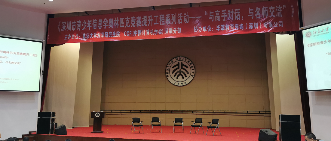 見圳客戶端、深圳新聞網(wǎng)8月16日訊 近日,深圳市青少年信息學(xué)奧林匹克競賽提升工程系列活動——“與高手對話,與名師交流”在北京大學(xué)深圳研究生院國際會議報告廳舉行。本次活動由北京大學(xué)深圳研究生院、 CCF(中國計算機(jī)學(xué)會)深圳分部聯(lián)合主辦,畢莘教育咨詢(深圳)有限公司協(xié)辦。