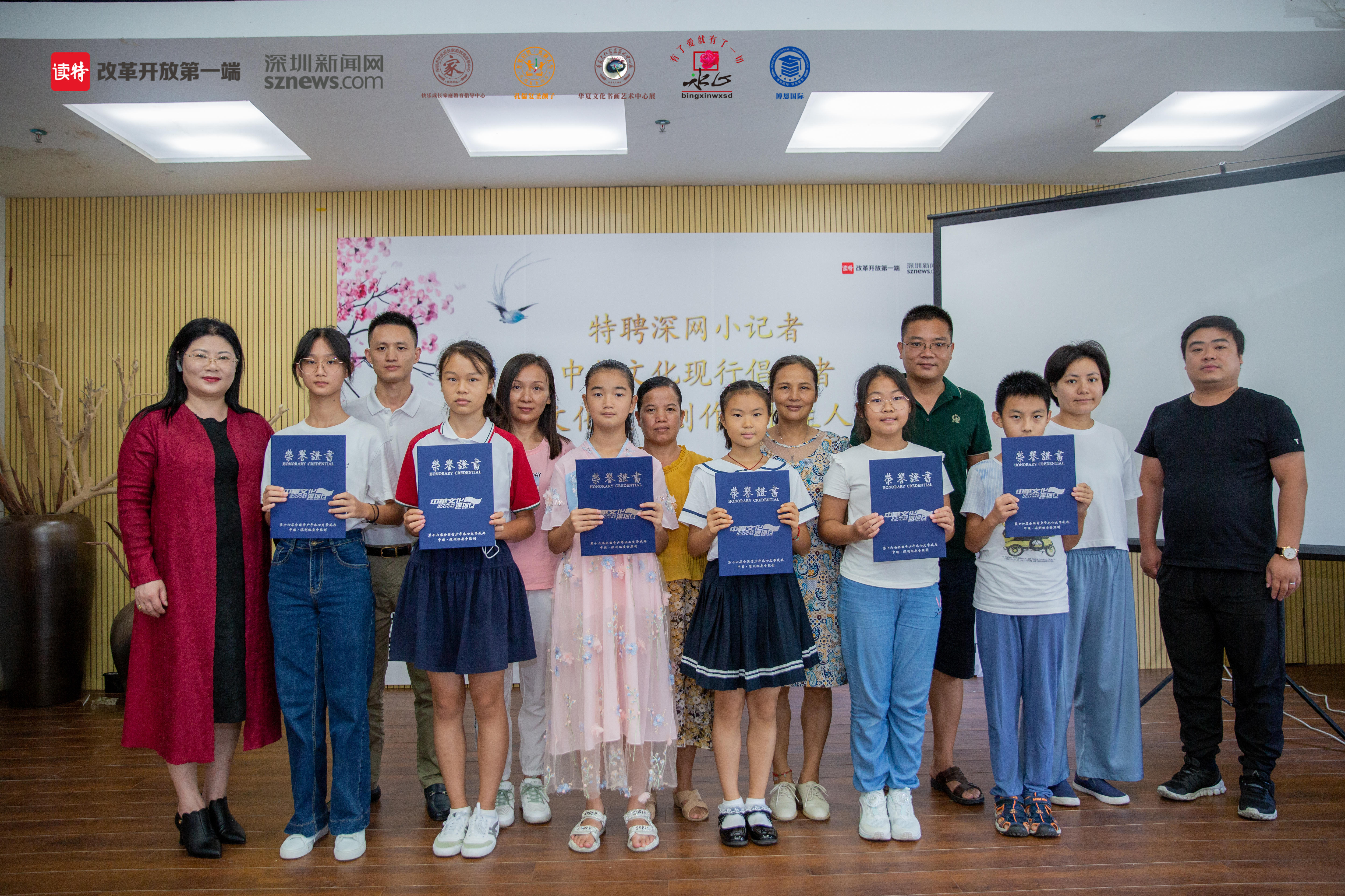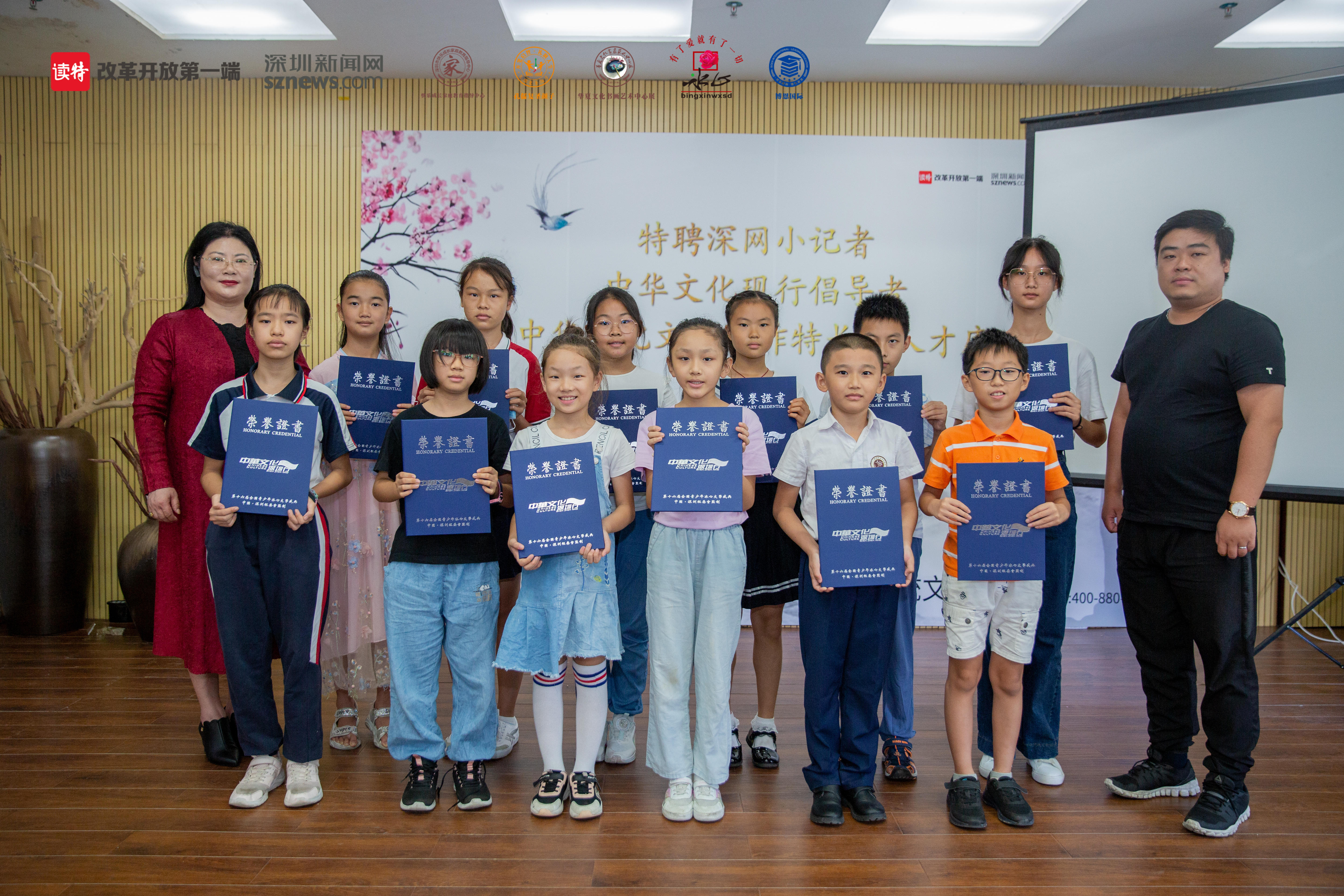 全國青少年冰心文學盛典組委會、博恩國際教育集團負責人肖俐,深圳新聞網(wǎng)政務民生事業(yè)部運營副總監(jiān)陳彬,以及第十六屆全國青少年冰心文學盛典復賽晉級學生代表、中華文化現(xiàn)行倡導者、中華文化文學創(chuàng)作特長生人才庫代表出席了活動。