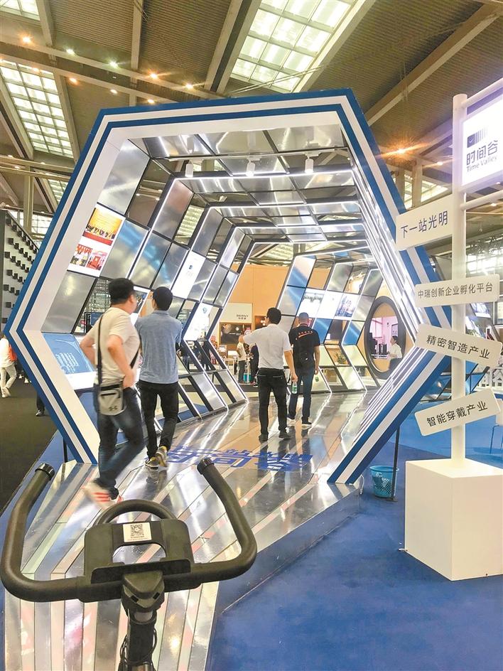 作為時尚產(chǎn)業(yè),深圳鐘表加快轉(zhuǎn)型升級。圖為深圳鐘表產(chǎn)業(yè)基地——“時間谷”在展會上亮相,吸引眾人眼球。