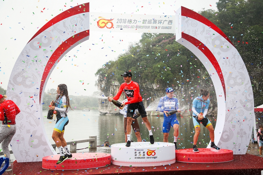 “世巡賽?環(huán)廣西”是亞洲地區(qū)備受關(guān)注的公路自行車賽事,吸引了包括環(huán)法冠軍天空車隊(duì)(英國(guó))、環(huán)意冠軍太陽(yáng)網(wǎng)車隊(duì)(德國(guó))等18支世界著名車隊(duì)前來(lái)參賽,結(jié)合廣西令人驚艷的自然環(huán)境風(fēng)光,吸引了全世界的目光。環(huán)廣西世巡賽全程由南向北,以多種形式嚴(yán)格考驗(yàn)騎手們的體力、騎行技術(shù),以及團(tuán)隊(duì)合作能力。10月21日下午的桂林城市賽段中,快步地板車隊(duì)小將法比奧?雅克布森(Fabio Jakobsen)最后時(shí)刻反超博拉-漢斯格雅車隊(duì)沖刺手帕斯卡?阿克曼(Pascal Ackermann),取得個(gè)人在本屆格力“世巡賽?環(huán)廣西”上的第二個(gè)勝場(chǎng)。而來(lái)自天空車隊(duì)的詹尼?莫斯孔(Gianni Moscon)在經(jīng)歷了6個(gè)比賽日超過(guò)900公里的騎行后最終奪冠,拿下了的環(huán)廣西世巡賽的總冠軍??偝煽?jī)亞季軍分別是博拉-漢斯格雅車手菲利克斯?格羅斯查特內(nèi)爾(Felix Grosschartner)以及阿斯塔納車手謝爾蓋?切爾涅斯基(Sergei Chernetski)。