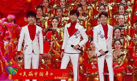 除夕之夜,以“大美中國夢 金雞報春來”為主題的雞年春晚如約而至。以“歡樂頌五美”與TFBOYS共同奉獻的《美麗中國年》開場,以李谷一、關牧村、高音、劉雨欣等新老藝人演唱《難忘今宵》結尾,全程42個節(jié)目亮相春晚舞臺,為除夕年夜飯捧上一道文化大餐,也為農歷雞年開了一個好頭。