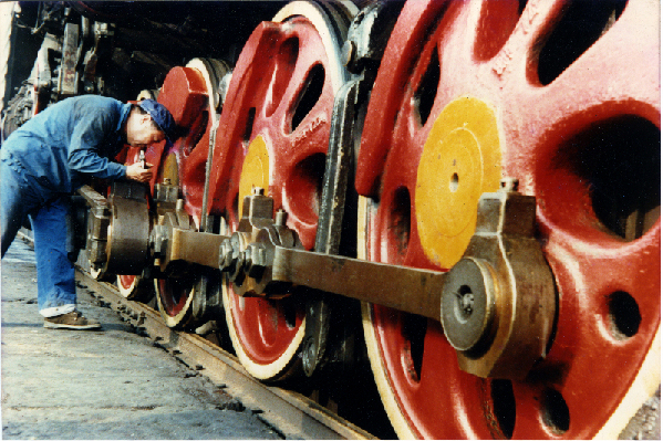 那個時候的鐵路修車人,每每“伺候”這些大家伙時,總會用油棉紗將烏黑車身和大紅車輪擦得锃亮?!熬褪且尰疖囉泄删珰馍?,這不就是咱檢修工人的價值嗎?”吳師傅談到此,聲音不由高了幾度。