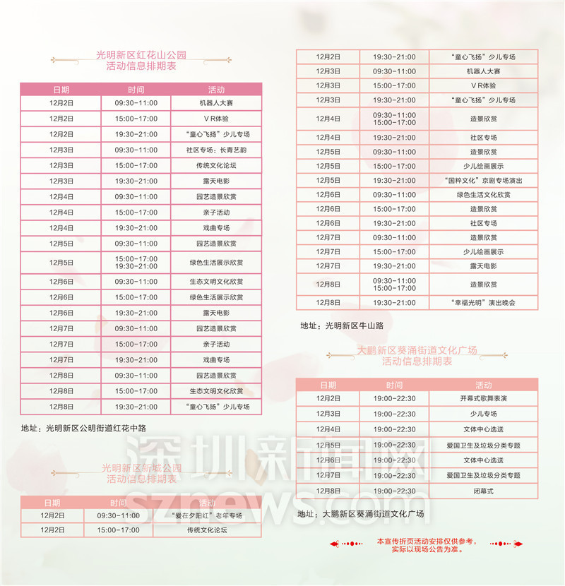深圳新聞網(wǎng)12月1日訊(記者 鐘鴻冰 通訊員 崔嵩)一年一度的公園文化節(jié)即將到來,12月2日-12月8日,2017年第十二屆公園文化周將在全市27家公園舉行。本屆公園文化周緊密結合創(chuàng)建“國家森林城市”和打造“世界著名花城”重點工作,以“美麗深圳 多彩生活”為主題,充分展現(xiàn)美麗宜居的城市環(huán)境及豐富多彩的城市文化生活。