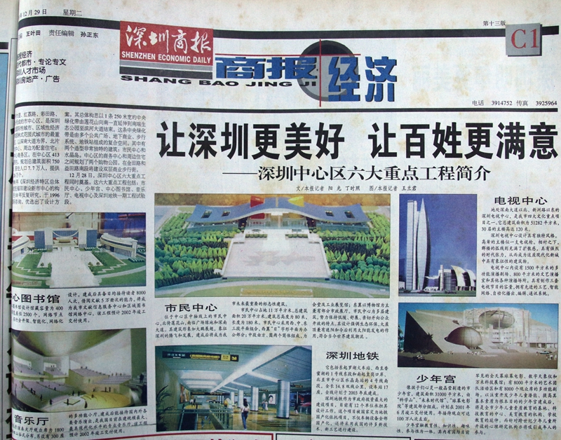 1998年12月29日,深圳商報C1版介紹深圳中心區(qū)六大重點工程